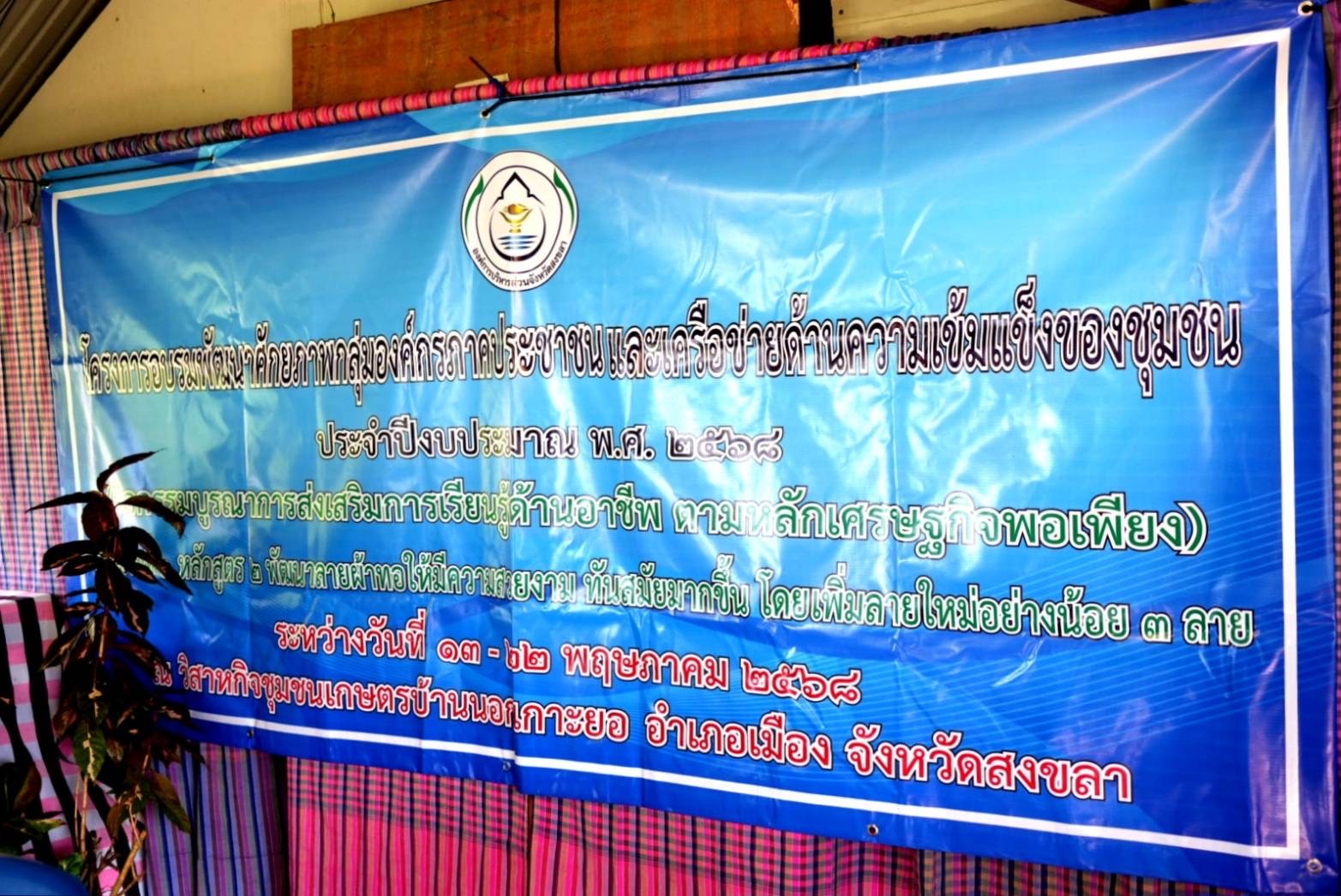 อบจ.สงขลา ขับเคลื่อนโครงการพัฒนาศักยภาพกลุ่มองค์กรภาคประชาชนและเครือข่ายด้านความเข้มแข็งของชุมชน ประจำปีงบประมาณ พ.ศ. 2568 กิจกรรมบูรณาการส่งเสริมการเรียนรู้ด้านอาชีพตามหลักเศรษฐกิจพอเพียง หลักสูตรพัฒนาผ้าทอให้มีความสวยงามทันสมัยมากขึ้น