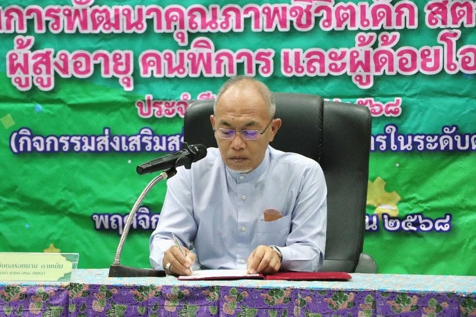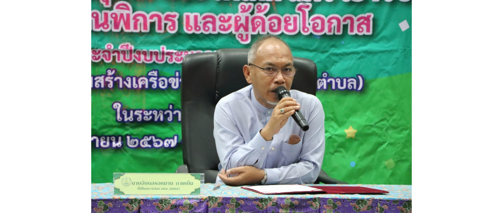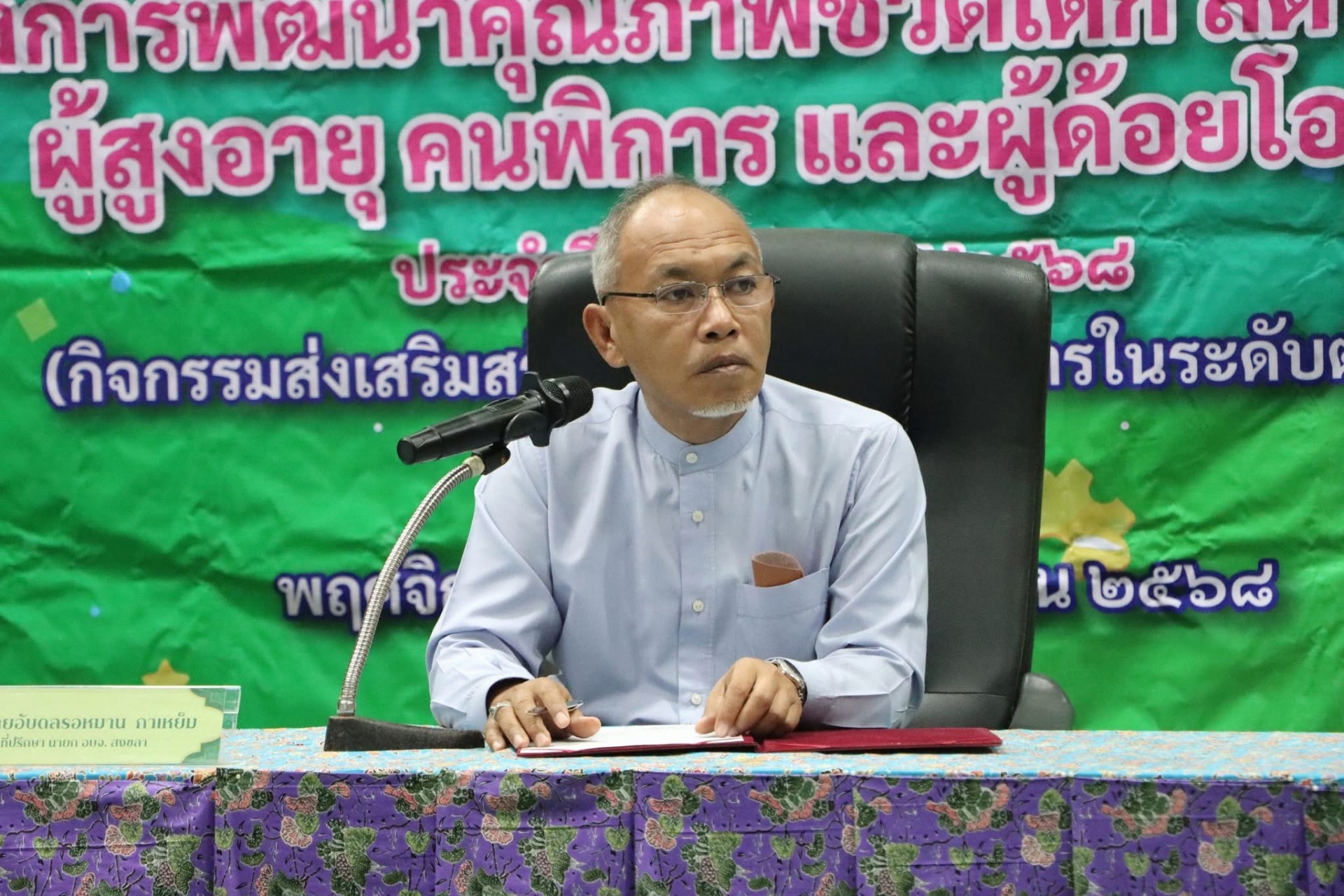 นายอับดลรอหมาน กาเหย็ม ที่ปรึกษานายกองค์การบริหารส่วนจังหวัดสงขลา เป็นประธานในพิธีเปิดกิจกรรมส่งเสริมสร้างเครือข่ายคนพิการในระดับตำบล ภายใต้โครงการพัฒนาคุณภาพชีวิตเด็ก สตรี เยาวชน ผู้สูงอายุ คนพิการและผู้ด้อยโอกาส ประจำปีงบประมาณ พ.ศ. 2568