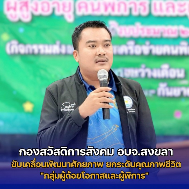 กองสวัสดิการสังคม อบจ.สงขลา ขับเคลื่อนพัฒนาศักยภาพ ยกระดับคุณภาพชีวิต "กลุ่มผู้ด้อยโอกาสและผู้พิการ" มุ่งส่งเสริมคุณภาพชีวิตที่ดีในอนาคต